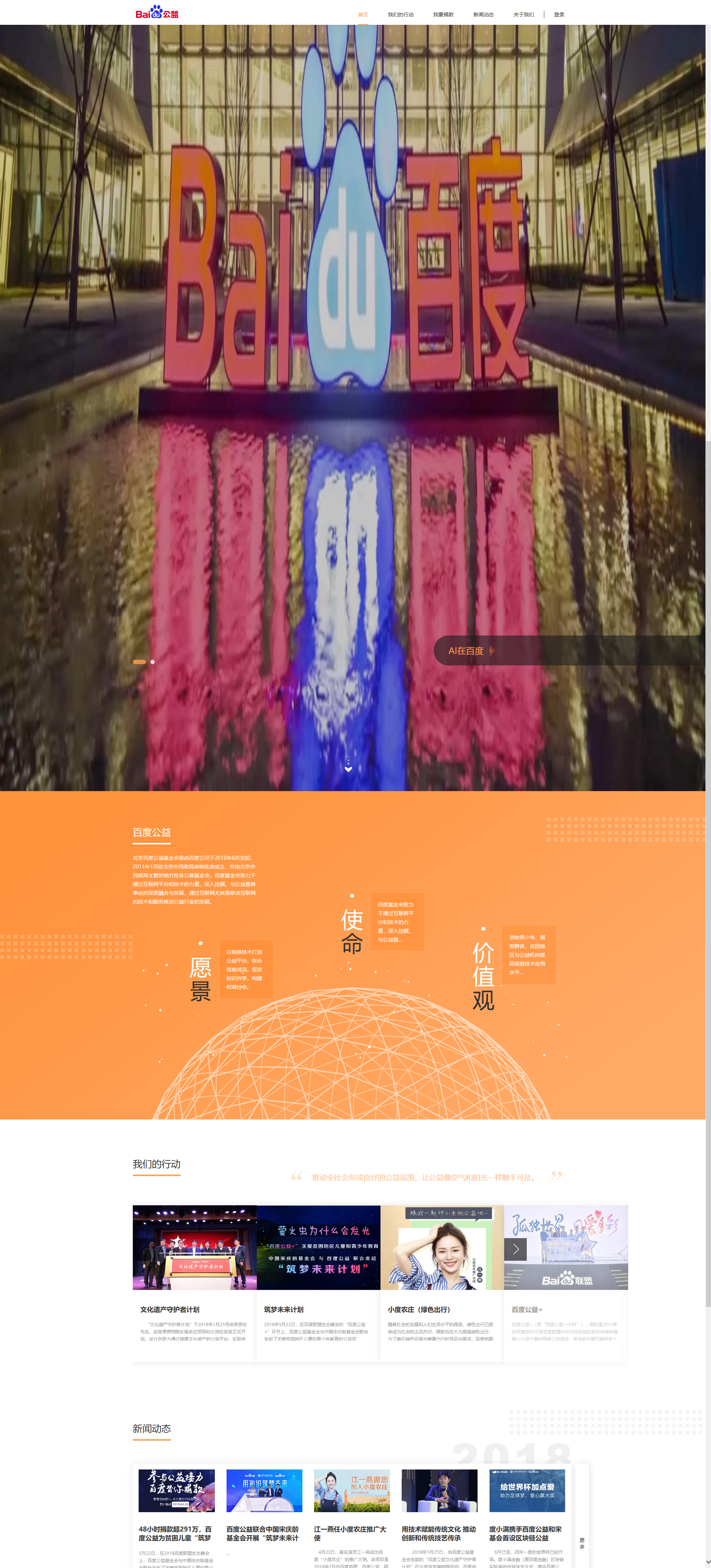 設(shè)計(jì)思路:分形科技承擔(dān)其IT整體解決方案建設(shè),包括官網(wǎng)建設(shè),社區(qū),運(yùn)營(yíng)的等?,F(xiàn)有項(xiàng)目有百度公益,救助平臺(tái),認(rèn)證官網(wǎng),CSR官網(wǎng),百度尋人,中國(guó)志愿者服務(wù)官網(wǎng)等。是分形科技的長(zhǎng)期合作伙伴