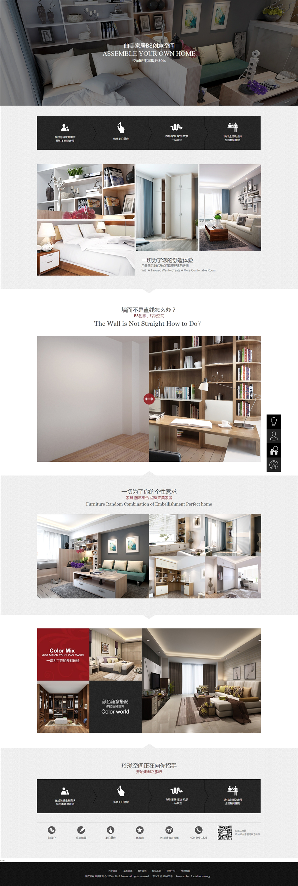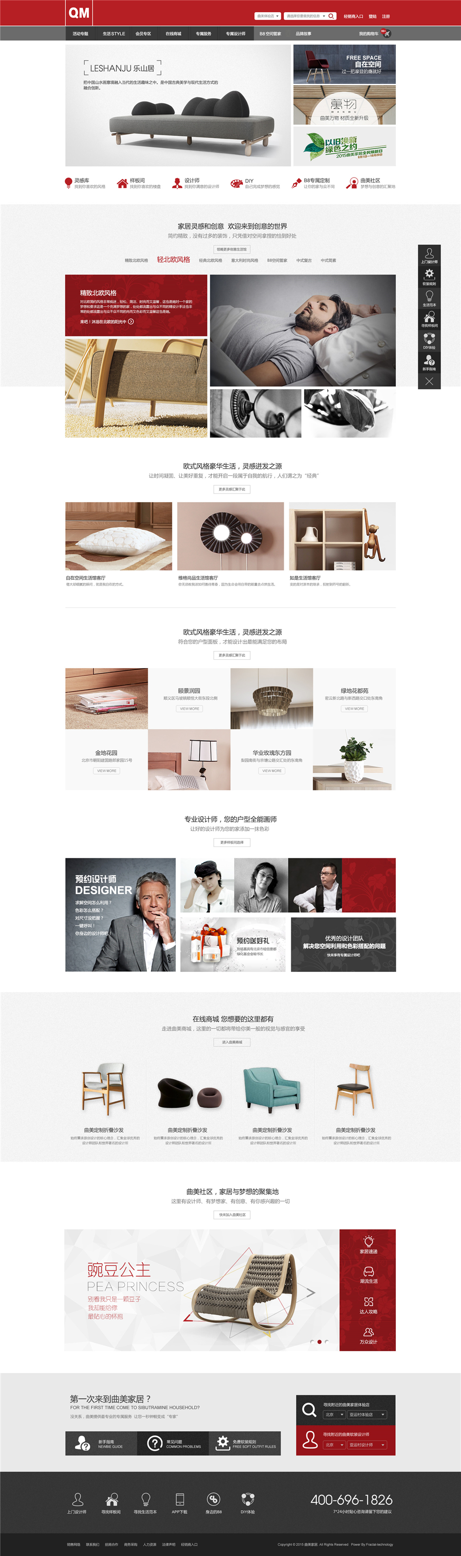 設(shè)計理念:曲美家居商城包含曲美四月活動,曲美預(yù)約設(shè)計、萬眾設(shè)計、在線商城等涵蓋官網(wǎng),社區(qū),商城等。人性化的參考,精湛的設(shè)計,無一不體現(xiàn)曲美家具的品牌高端,分形科技與其是長期合作和好伙伴,保證其網(wǎng)站穩(wěn)定運行。曲美家居官網(wǎng)高端的設(shè)計,凸顯了曲美品牌的高端。其次,社區(qū)網(wǎng)站的形式新穎,通過點贊,評論等方式了解用戶需求,不但為用戶提供了廣闊的瀏覽平臺,同時也能讓工作人員更好的了解用戶的使用感受,從而能夠讓他們的產(chǎn)品更讓大眾接受。分形科技承擔(dān)曲美家居的整體IT網(wǎng)站建設(shè),所以網(wǎng)絡(luò)推廣無疑也是分形科技承擔(dān)的工作中的一部分,長期且有效的推廣方式,使其網(wǎng)站穩(wěn)定的運行。