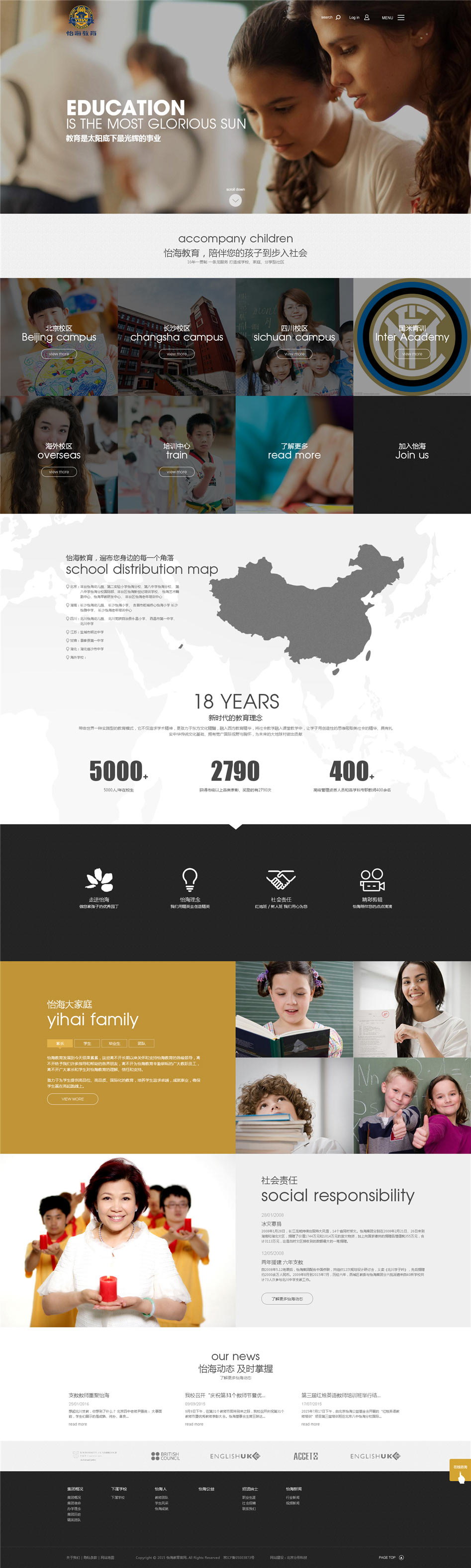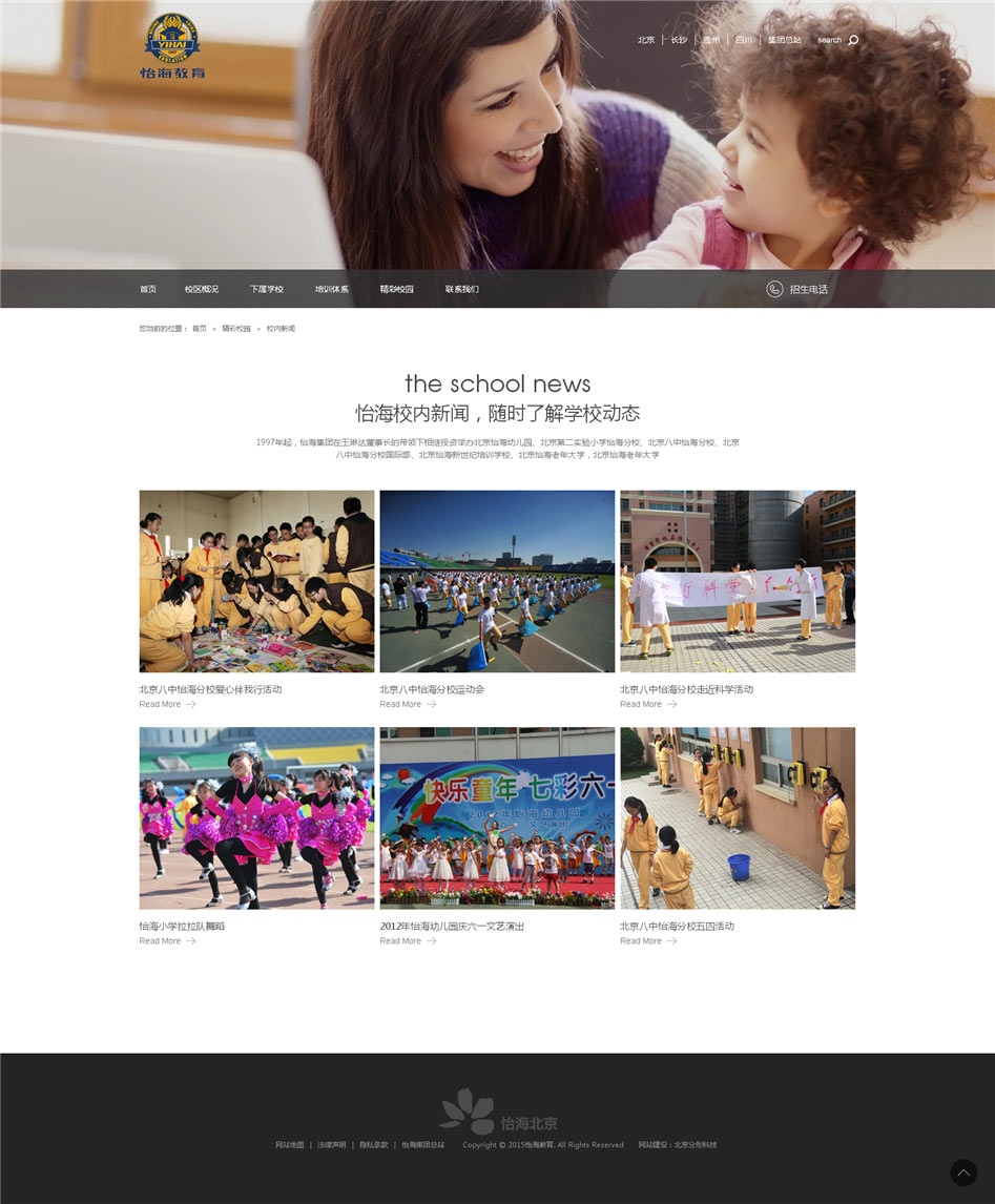 設(shè)計(jì)理念:此網(wǎng)站是怡海教育集團(tuán)站群建設(shè)項(xiàng)目。此網(wǎng)站是集怡海集團(tuán)總站及分校于一體的網(wǎng)站,統(tǒng)一的后臺(tái)管理,方便操作。前臺(tái)風(fēng)格高端大氣也更加多面的展示怡海教育品牌形象,極大的提高了用戶的體驗(yàn)和認(rèn)知的同時(shí)彰顯了集團(tuán)實(shí)力。