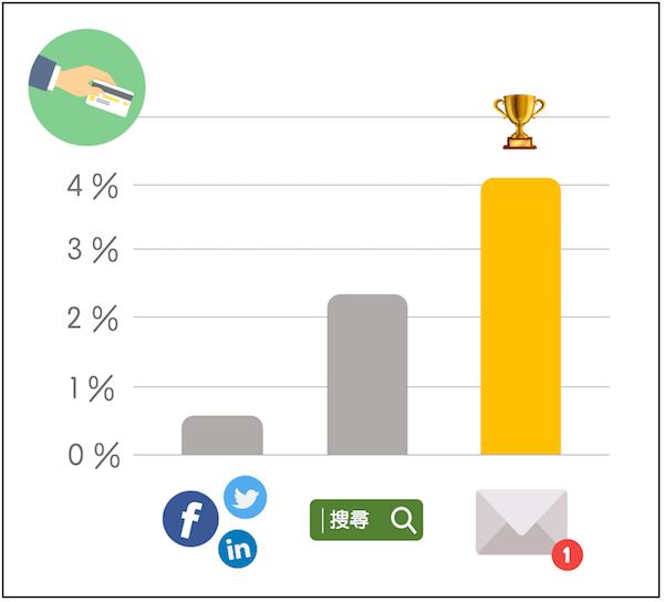 來自電子郵件的使用者進行消費的比例和轉(zhuǎn)換率,高于來自社群媒體和搜索引擎的使用者。 (Icon from flaticon)